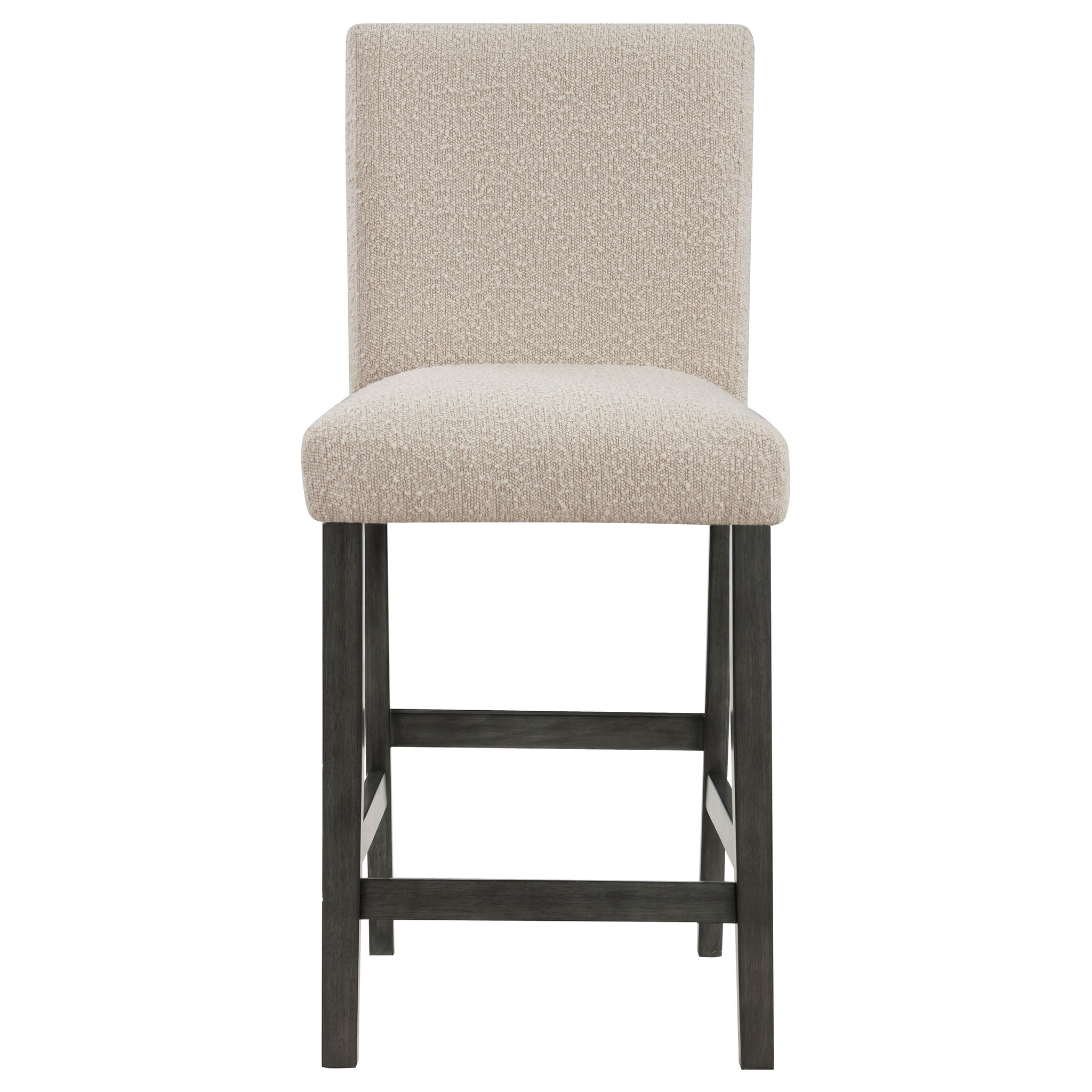 Elevate your dining experience with this chic counter height chair, a blend of simplicity and texture. Wrapped in the luxurious touch of boucle fabric, the chair offers a tactile feast, inviting guests to savor every second seated. Its silhouette stands tall on charcoal grey legs, a grounding finish that brings a sophisticated contrast to the chair's creamy hues. The understated elegance of this chair is a tribute to minimalist design, yet it hums with a warmth that enlivens any contemporary kitchen or bar area. It's where comfort meets style. Key Features: • Counter height chair for a contemporary dining or kitchen setting • Upholstered in textured boucle fabric for a luxe feel • Supported by sturdy legs in a charcoal grey finish • Neutral color palette complements a variety of decors • Perfect combination of modern design and inviting comfort
