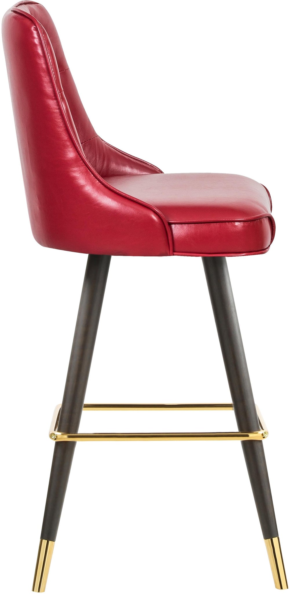 Bring home a classic look with this Portnoy faux leather bar/counter stool. This elegant stool offers traditional deep button tufting on its seat back for a sophisticated design that adds refined beauty to your home bar or counter. The soft red faux leather is rich and supple to the touch and looks authentic. The stool rests on espresso wood legs and has a gold footrest and hardware for an elegant finish.