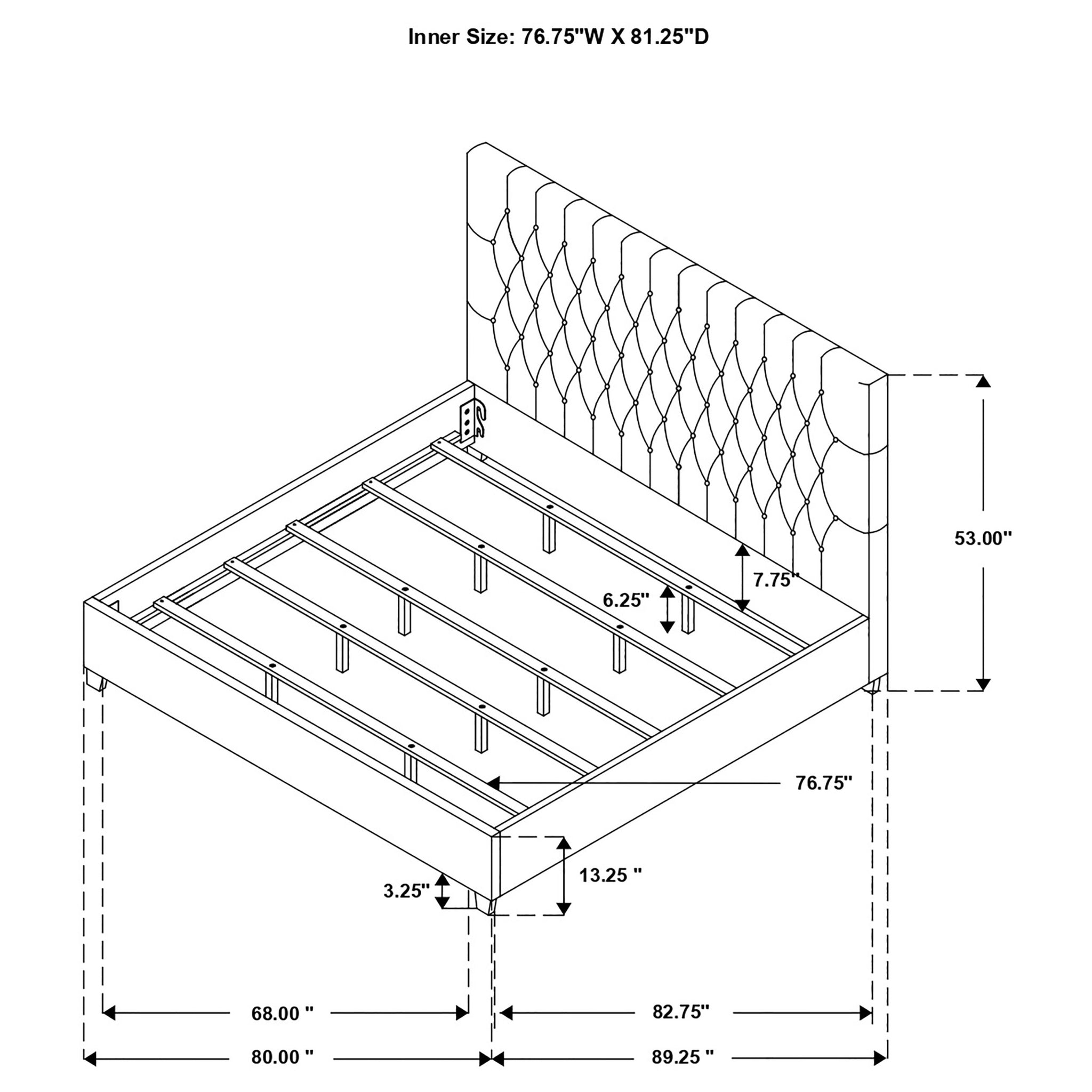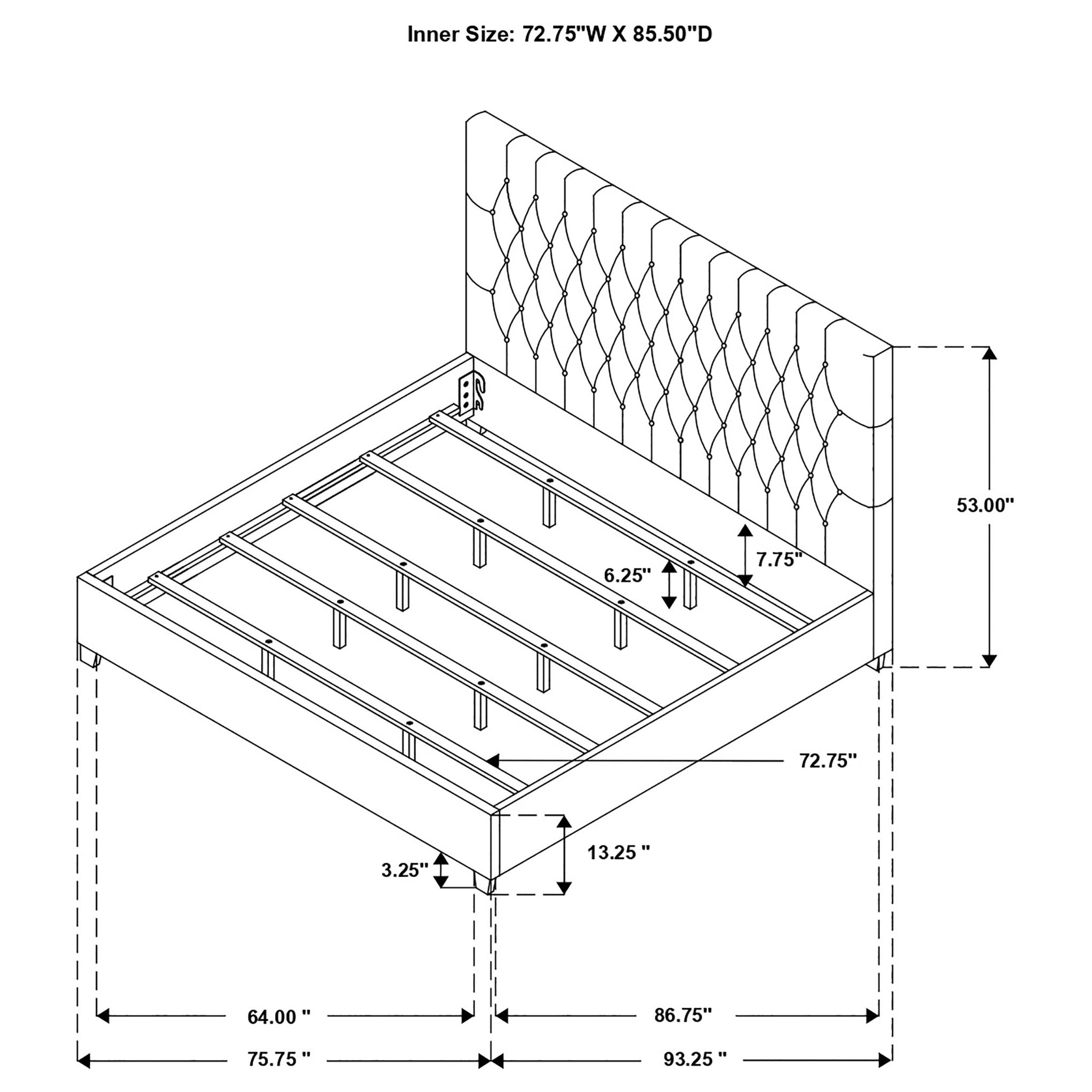 Elevate your bedroom with this upholstered panel bed, crafted with refined details for timeless charm. A tall, button-tufted headboard creates an elegant focal point, while the absence of a footboard lends an airy, open feel. Upholstered in soft fabric and supported by short espresso birch legs, this bed balances style with durability. Built with a sturdy pine and plywood frame, it requires a foundation to provide lasting support and comfort in your sleeping space._x005F_x000D_ Key Features: • Queen upholstered bed with tall button-tufted headboard design • Soft oatmeal fabric upholstery offers classic and timeless style • No footboard construction enhances open and spacious bedroom look • Durable pine and plywood frame ensures reliable mattress support • Espresso finished birch legs provide elegant contrast to the fabric • Requires a foundation for proper stability and sleeping comfort