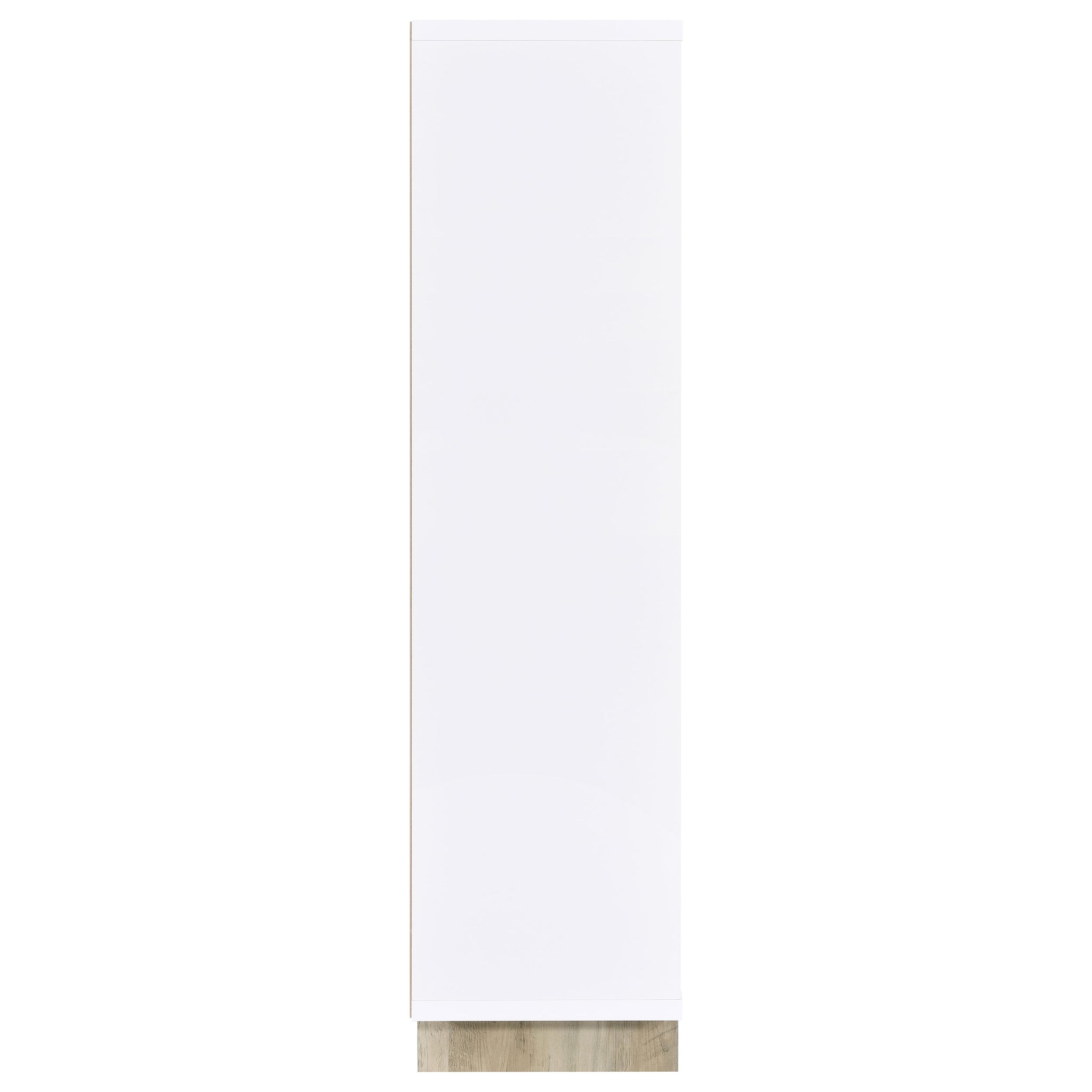 Indulge in the cozy, charming nature of a decorative bookcase. It's an asymmetric design with eight compartments over six shelves, offering easy spaces for decor, books, and other personal treasures. The bookcase shows off a two-tone finish combination, complete with white sides and shelves that brighten, and a brown wood grain back and legs, creating depth and contrast. Arched trim adds character to two of the compartments, perfect for highlighting favorite items. This versatile bookcase is a stylish choice in a foyer, living area, bedroom or even in your office.