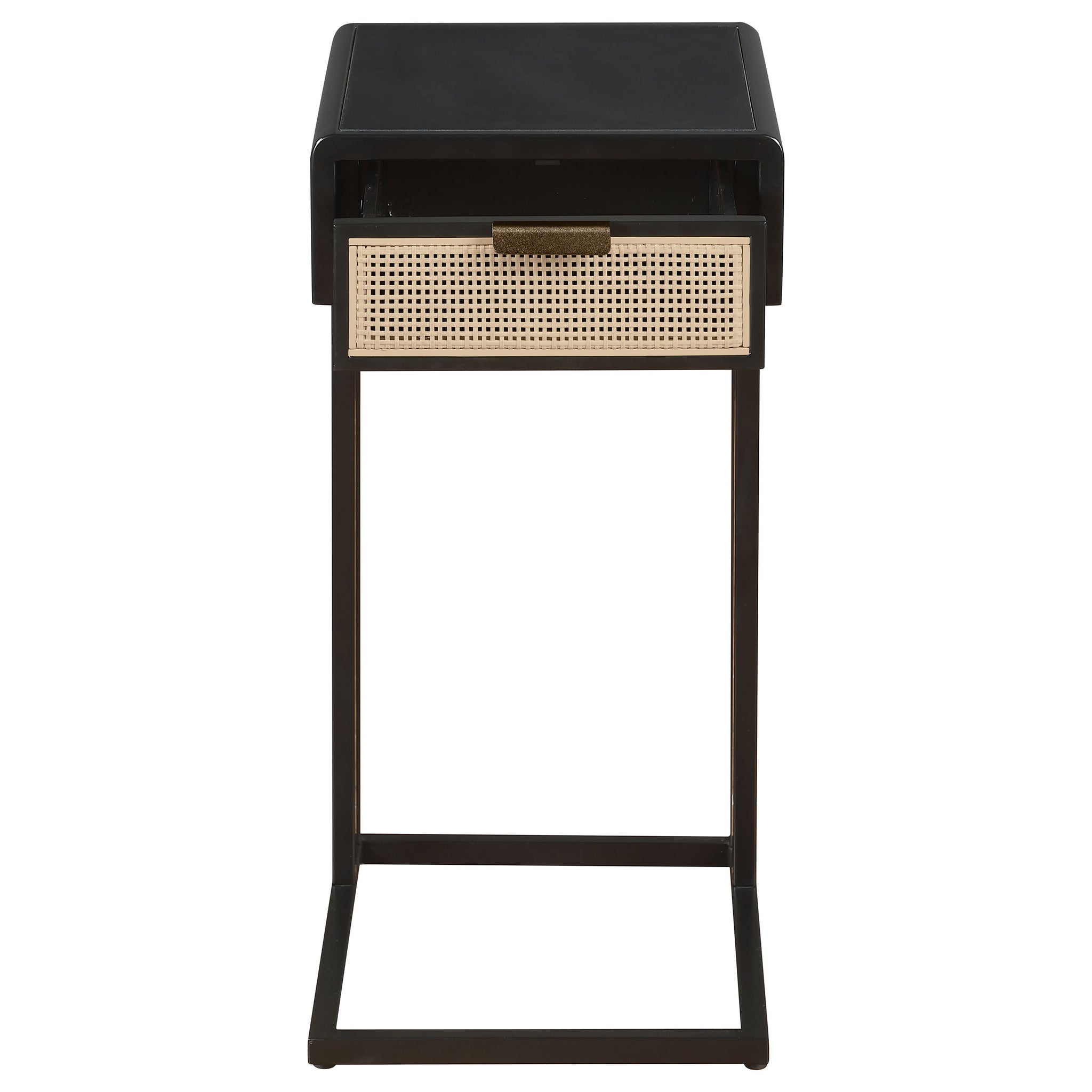 This C-shape side table effortlessly combines style and functionality, making it the perfect accent for your living space. Constructed with a sturdy heavy gauge metal frame, it offers lasting durability while maintaining a sleek, modern profile. The single drawer features a polyethylene (PE) rattan front, adding a touch of natural texture and charm. Its C-shape design allows it to slide easily under sofas or chairs, providing convenient surface space where you need it. This side table is both practical and stylish, ideal for any contemporary home.