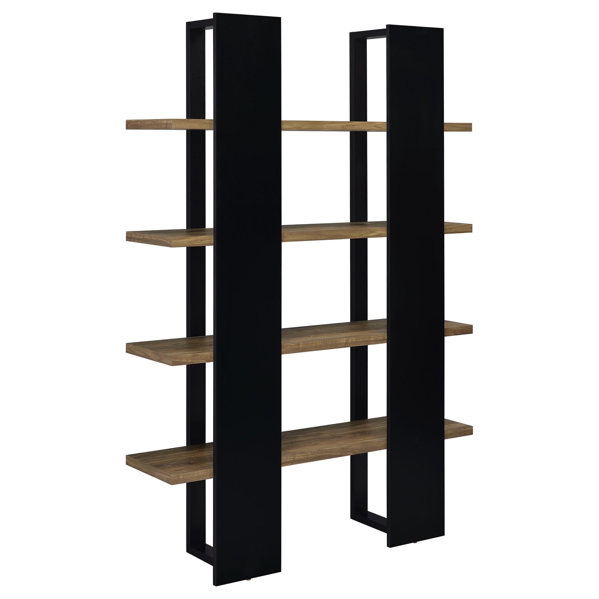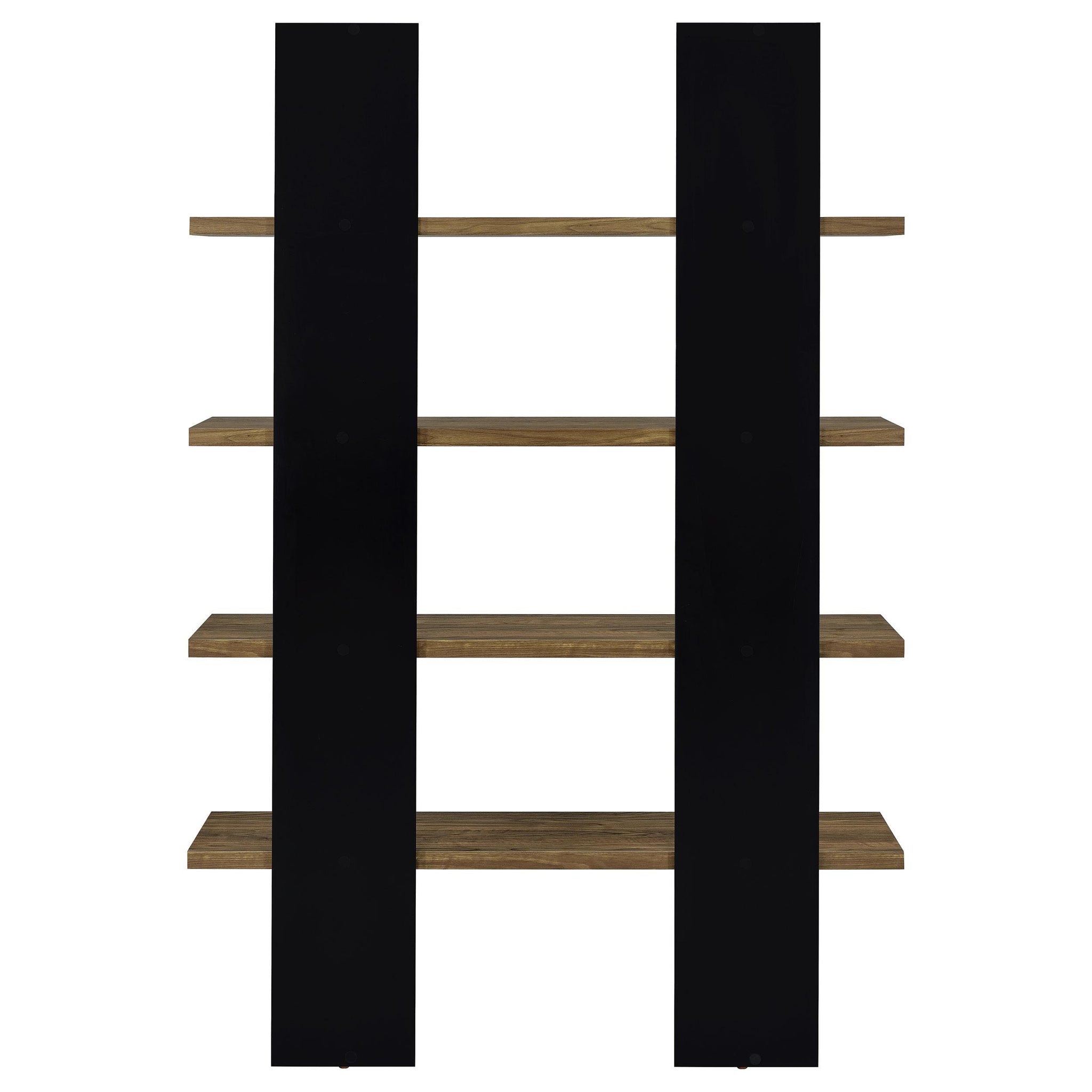 Clean lines and a floating style elevate this contemporary bookcase into a truly stylish furniture piece. With an elegant two-tone finish, this bookcase features an open and airy shelving design with four spacious full-length shelves to display decor, family photos, and more. Each shelf appears to float above one another, enveloped and held in place by a sturdy bracket-inspired frame. Each shelf also extends past the frame, lending a streamlined effect. Available in three different two-tone color combinations, choose the bookcase finish that pairs best with your existing color palette and home decor.