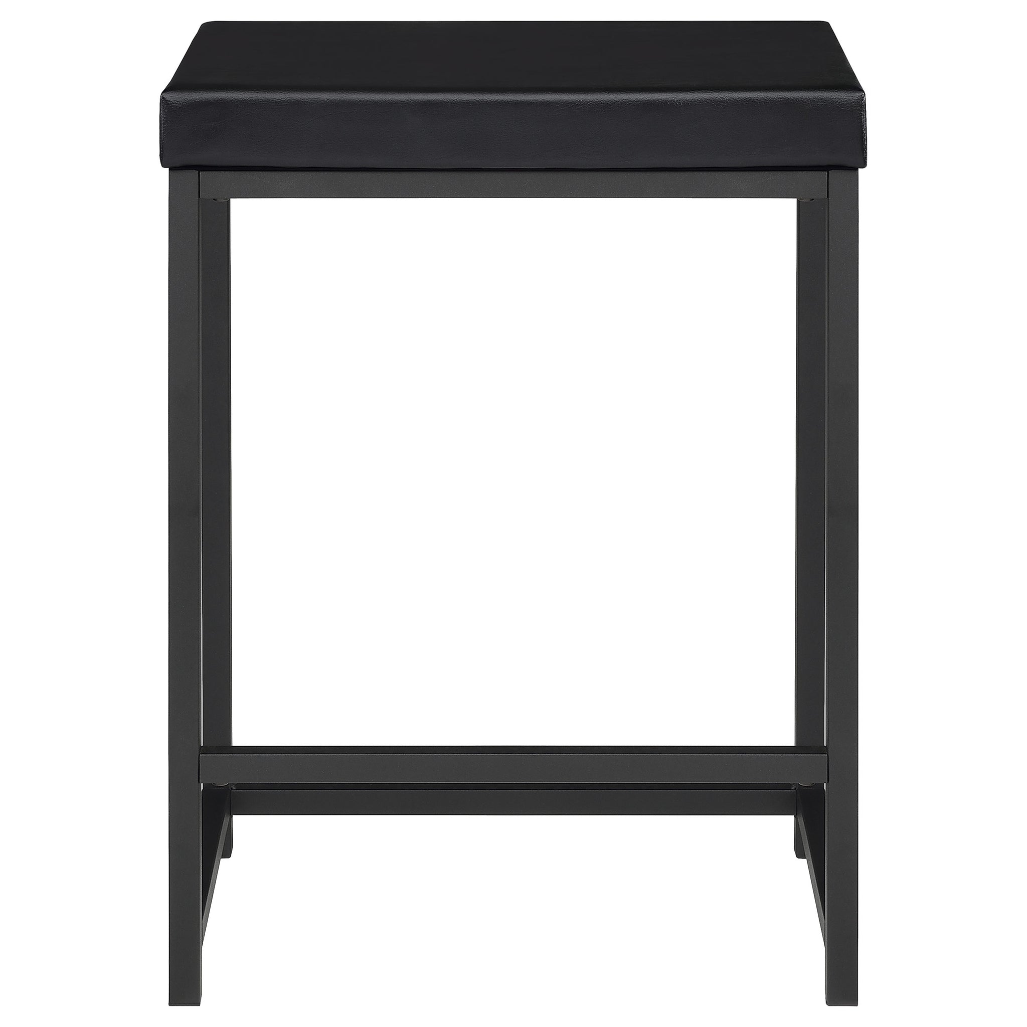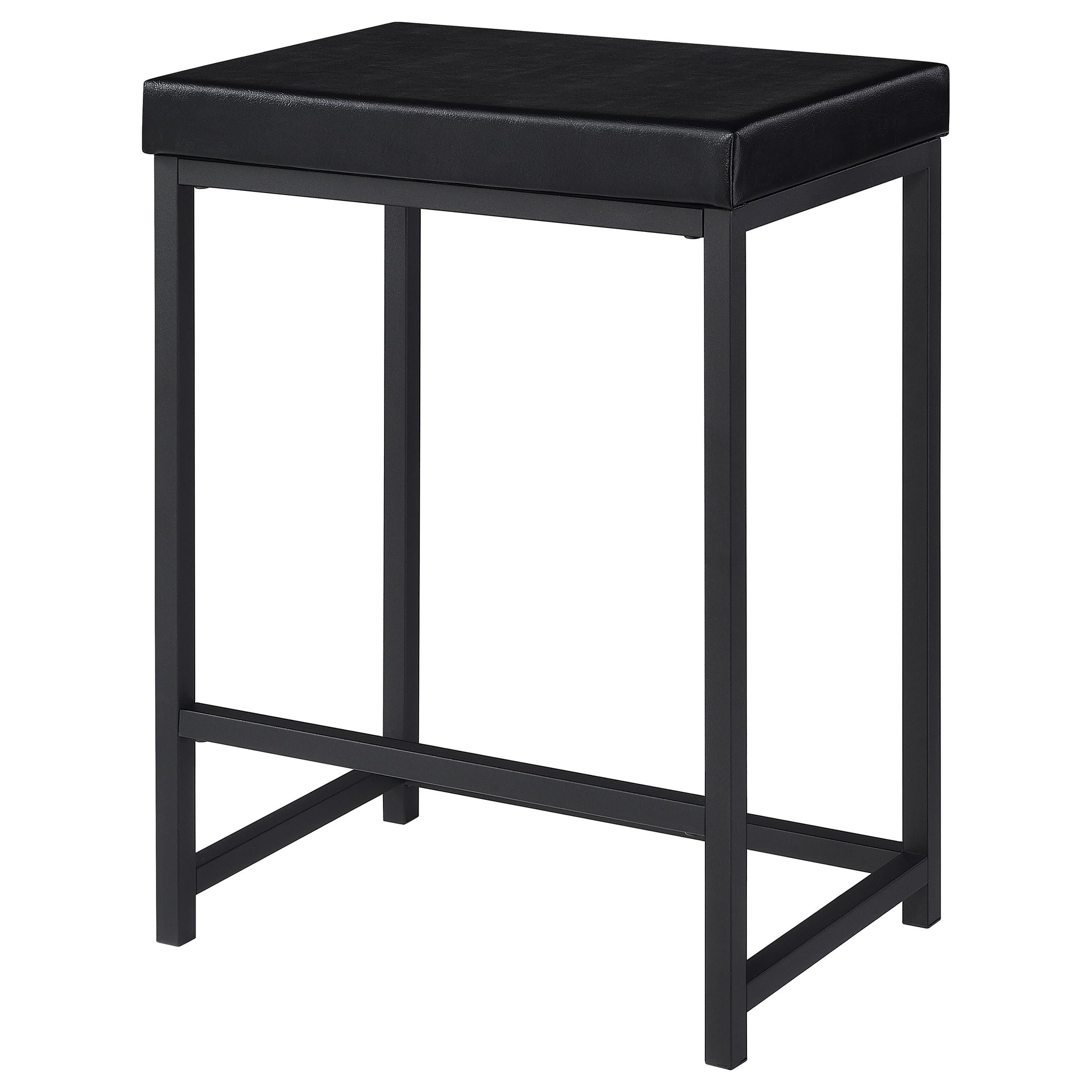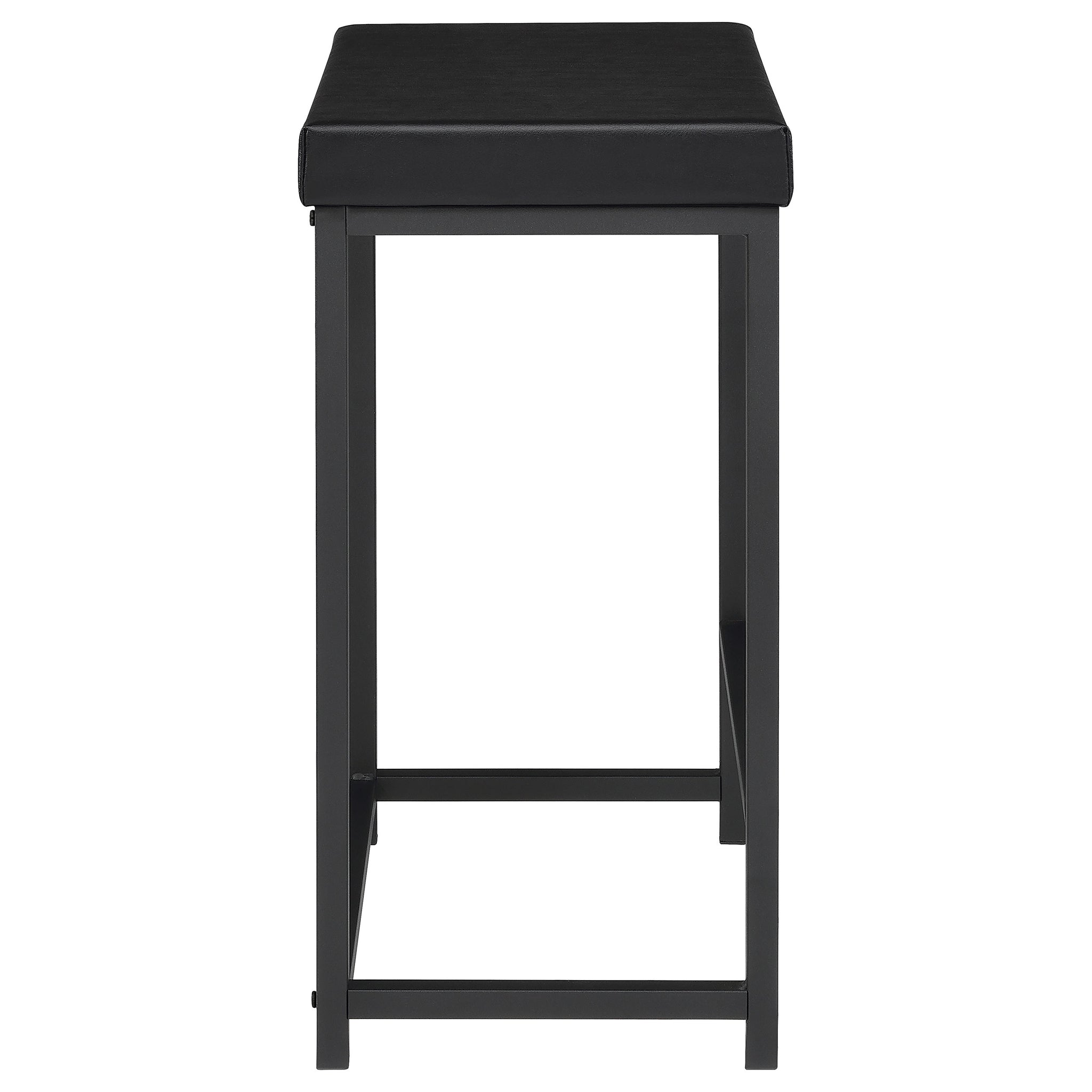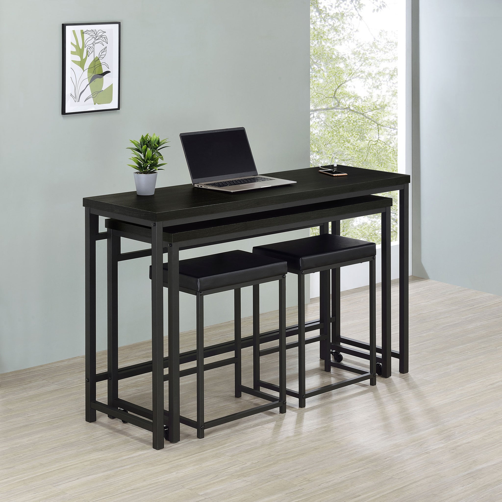 When space is at a premium, this modern four-piece counter height dining set does everything you need and more, easily serving as dining table, workspace, or homework spot. It features clean, crisp design with straight lines and square corners, all in a black finish that blends into surrounding decor in virtually any setting. The larger table includes a USB port in its top, while the smaller nesting table is on wheels that allow for easy movement to the perfect position for every occasion. Two stools are backless, with plush foam cushions and faux leather upholstery. Built in footrests offer added comfort and support for all to enjoy.