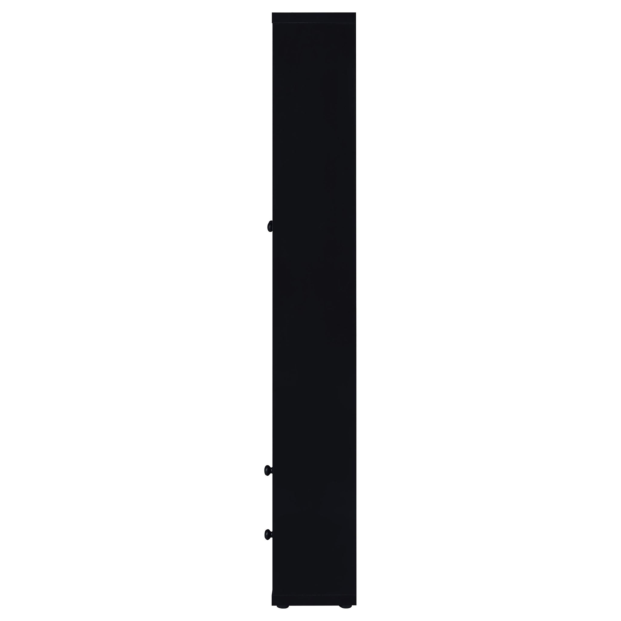 Glass doors are a key feature on a modern accent cabinet that blends into a variety of decors and living spaces. Providing four shelves for showing off everything from glassware to travel souvenirs, the cabinet features wood framed glass doors. They open to reveal two stationary and two adjustable shelves to accommodate all manner of items. In the base of the cabinet, two drawers add concealed storage, perfect for linens in the dining room, games in the den, and much more. The cabinet shows off a streamlined silhouette with petite round knobs that add the barest hint of texture and dimension to a neutral finish.