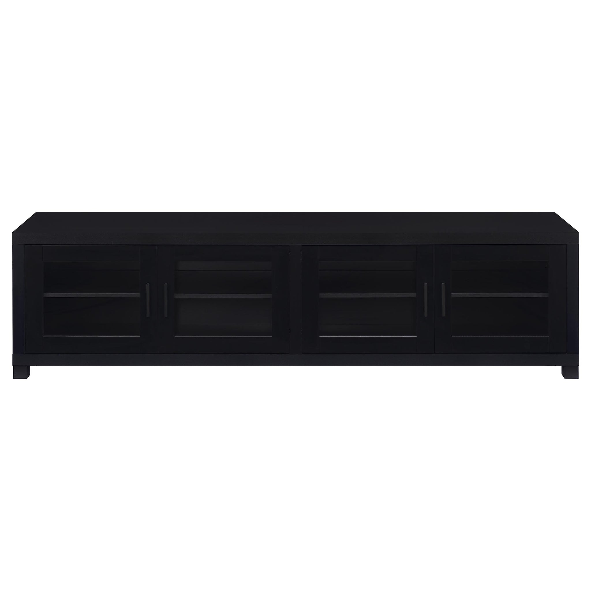 This 79-inch TV stand is the cornerstone of a home entertainment system, designed to anchor your viewing experience with both grandeur and functionality. Accommodating up to an 85-inch television, it brings cinema-scale enjoyment to the comfort of your living room. The quartet of doors opens to reveal adjustable shelves, offering tailored storage for all your media essentials. Crafted from engineered wood, this stand promises stability and longevity, allowing it to be a part of your home's stories for years to come. Its silhouette is as commanding as it is sleek, a testament to design that marries form with function.