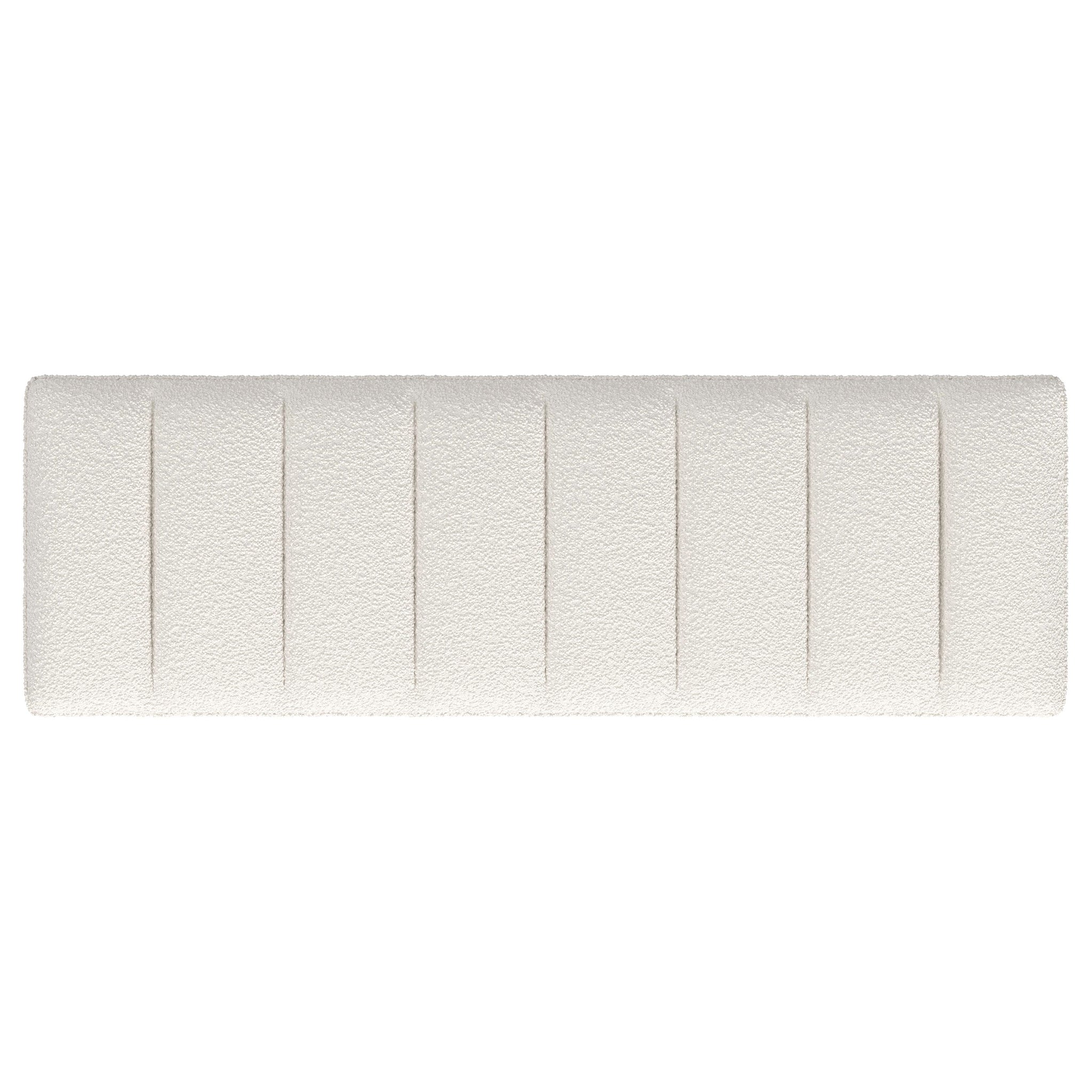 Textured upholstery play perfectly with the modern silhouette of a backless accent bench. Its deep black finished frame is constructed in metal for excellent durability, with a bracket inspired silhouette that emphasizes its contemporary design credentials. The seat is backless, with channel tufting that adds depth to plush foam cushioning. Upholstery is softly textured, perfect for a cozy feel in a modern living area or bedroom. Its neutral coloration is perfect for a variety of surrounding decor motifs.