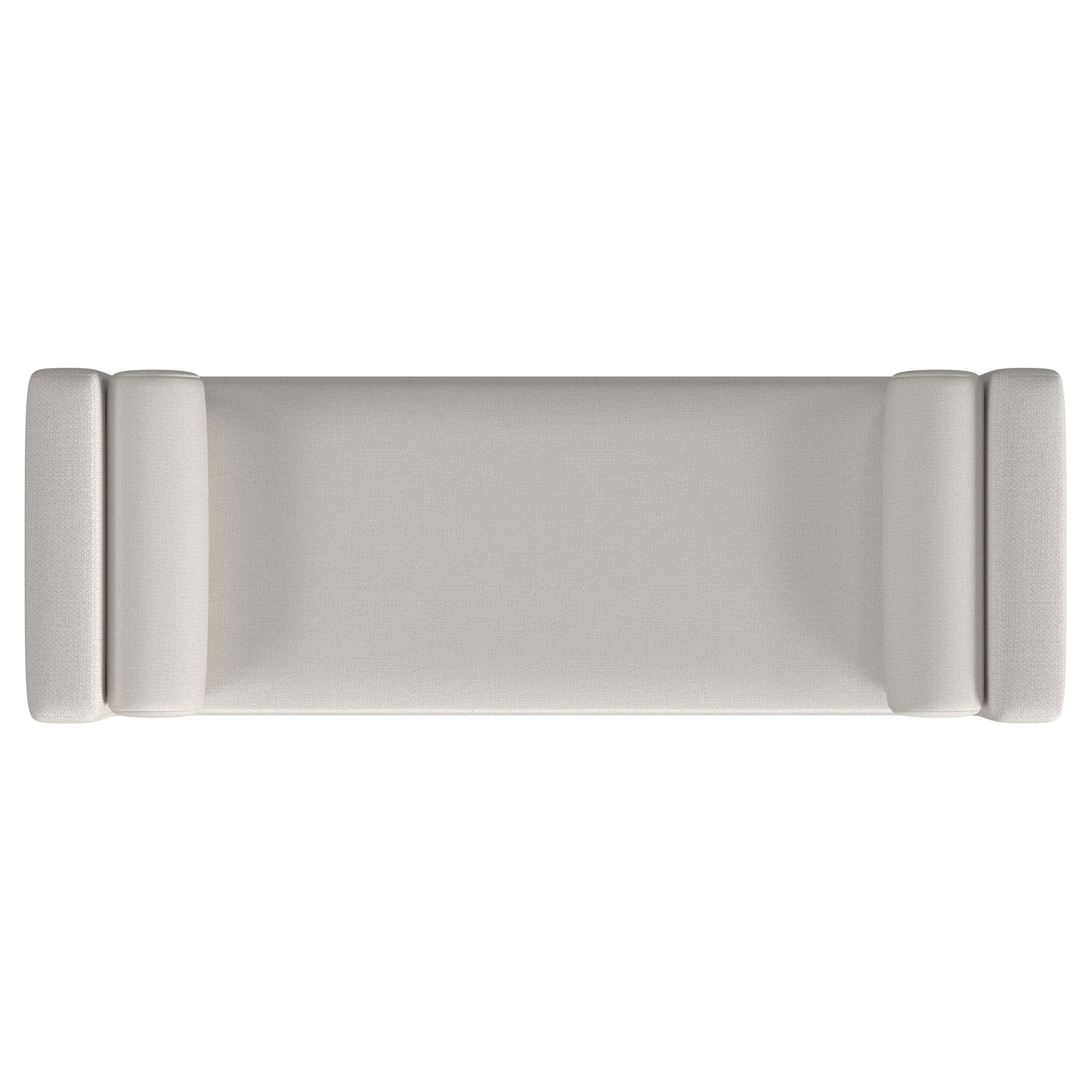 Complete a stylish, sophisticated living area or master suite with a modern upholstered bench. The backless design includes straight track arms, setting an austere silhouette. A pair of round bolster pillows soften the look and offer impeccable comfort and style. The bench seat cushion features foam fill, perfect for comfort in any space. The bench sits on a wooden bench and tapering legs, both receiving a black finish that creates lovely contrast and dimensionality.