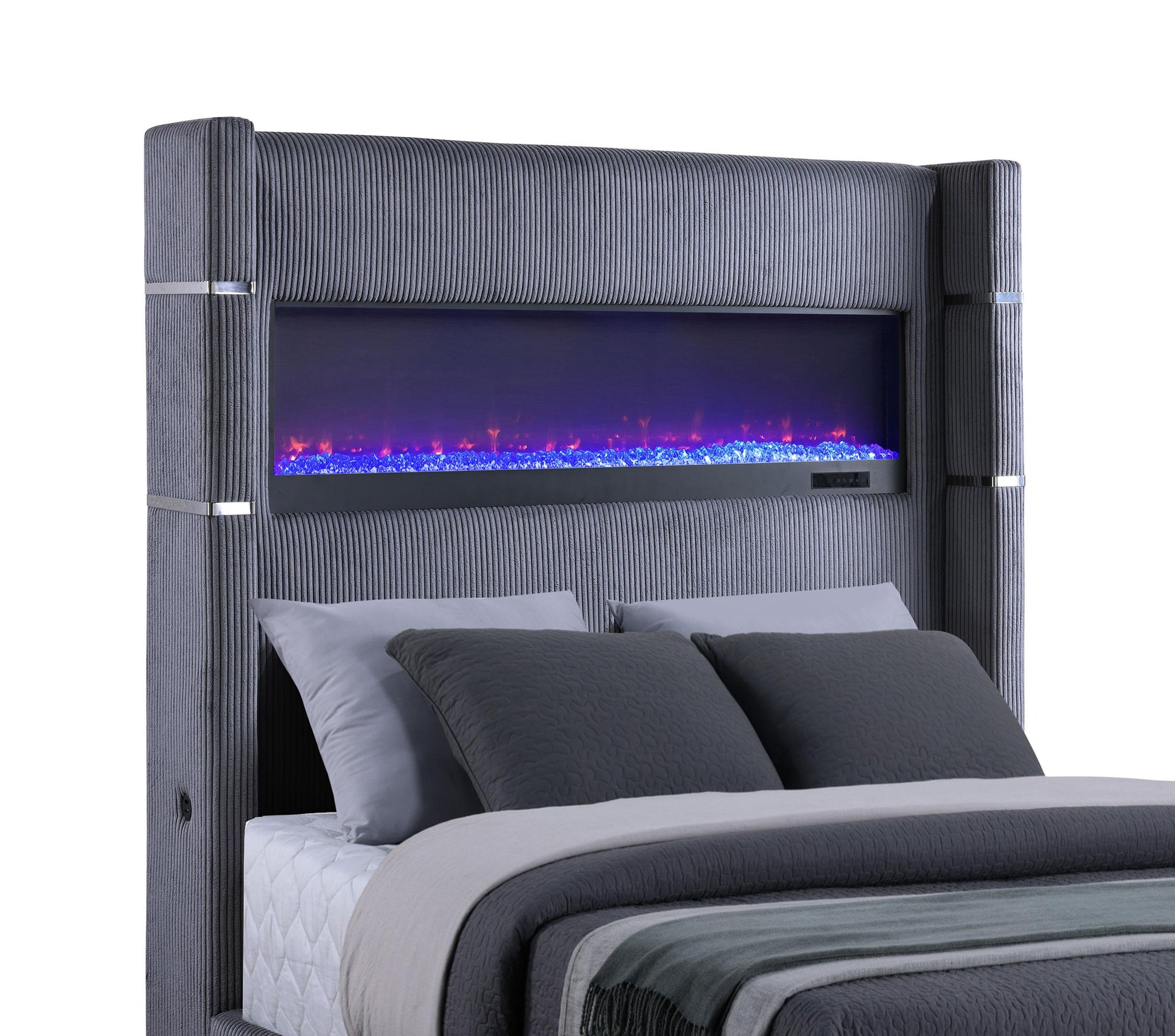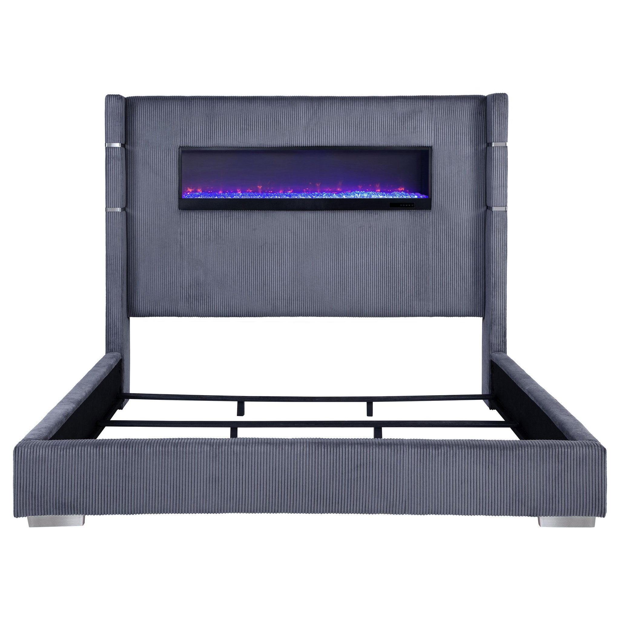 Transform any bedroom into a captivating sanctuary with this show-stopping bed, designed to draw attention and invite comfort. Available in plush corduroy upholstery, this bed effortlessly blends soft texture with modern sophistication. The integrated flame box offers a mesmerizing visual with 16 adjustable color options, all controlled via a convenient remote. With its eye-catching design and cozy feel, this bed elevates the bedroom experience while offering a stylish focal point.