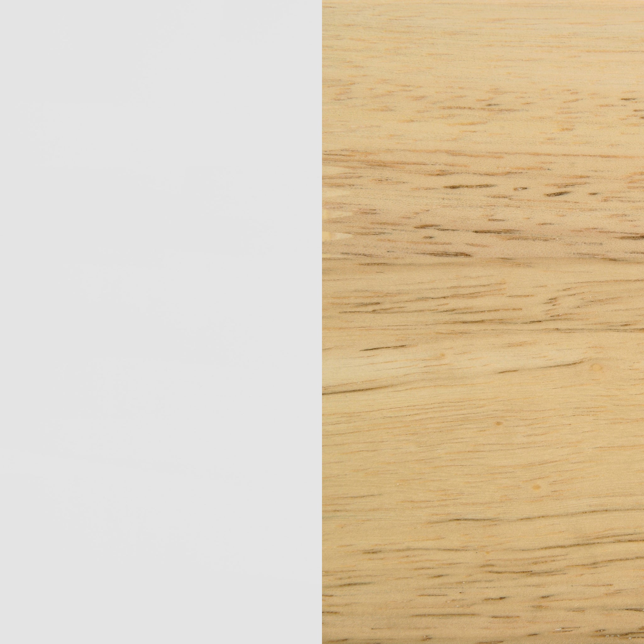 Stylish wood construction and a two-tone design highlight this modern twin bunk bed set. Perfect for a kid's bedroom, it offers two twin beds while saving floor space for playing. The bed features an angular frame and a natural wood finish, with white accents on the head and footboards and rails. An attached ladder provides access to the top bunk, which includes guard rails. It's a fantastic solution for siblings sharing a room or for sleepovers.