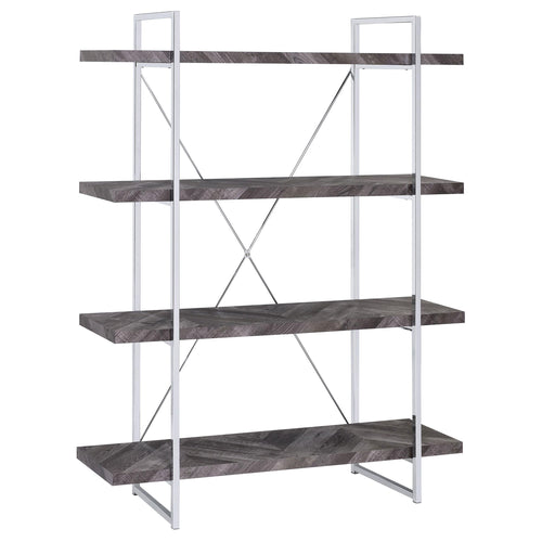 Grimma 4-shelf Bookcase Rustic Grey Herringbone