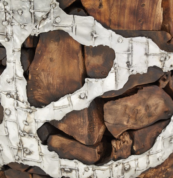 AICO Furniture Discoveries Wood Crafted Round Cocktail Table with Silver Accents ACF-ARF-CKTBL-001.