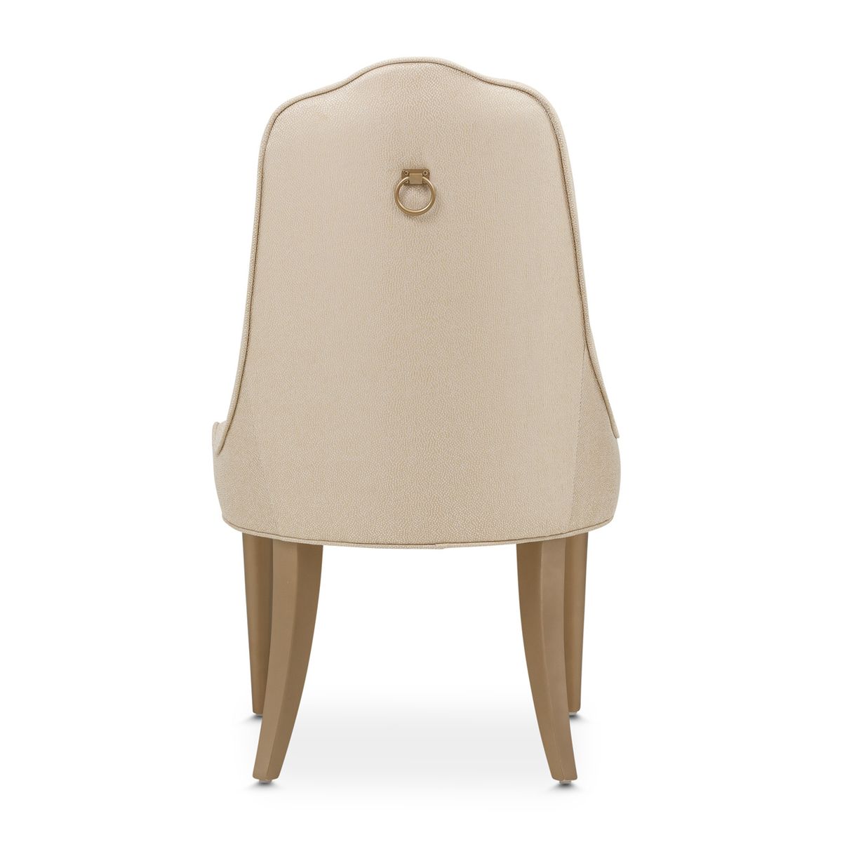 AICO Malibu Crest Side Chair in Crotch Mahogany (Set of 2) 9007003-824. Your luxury life is waiting on the coast with Malibu Crest. Showcasing creamy champagnes, dramatic curves and eclectic designs, this chic collection was made for interiors that embrace modern elegance.