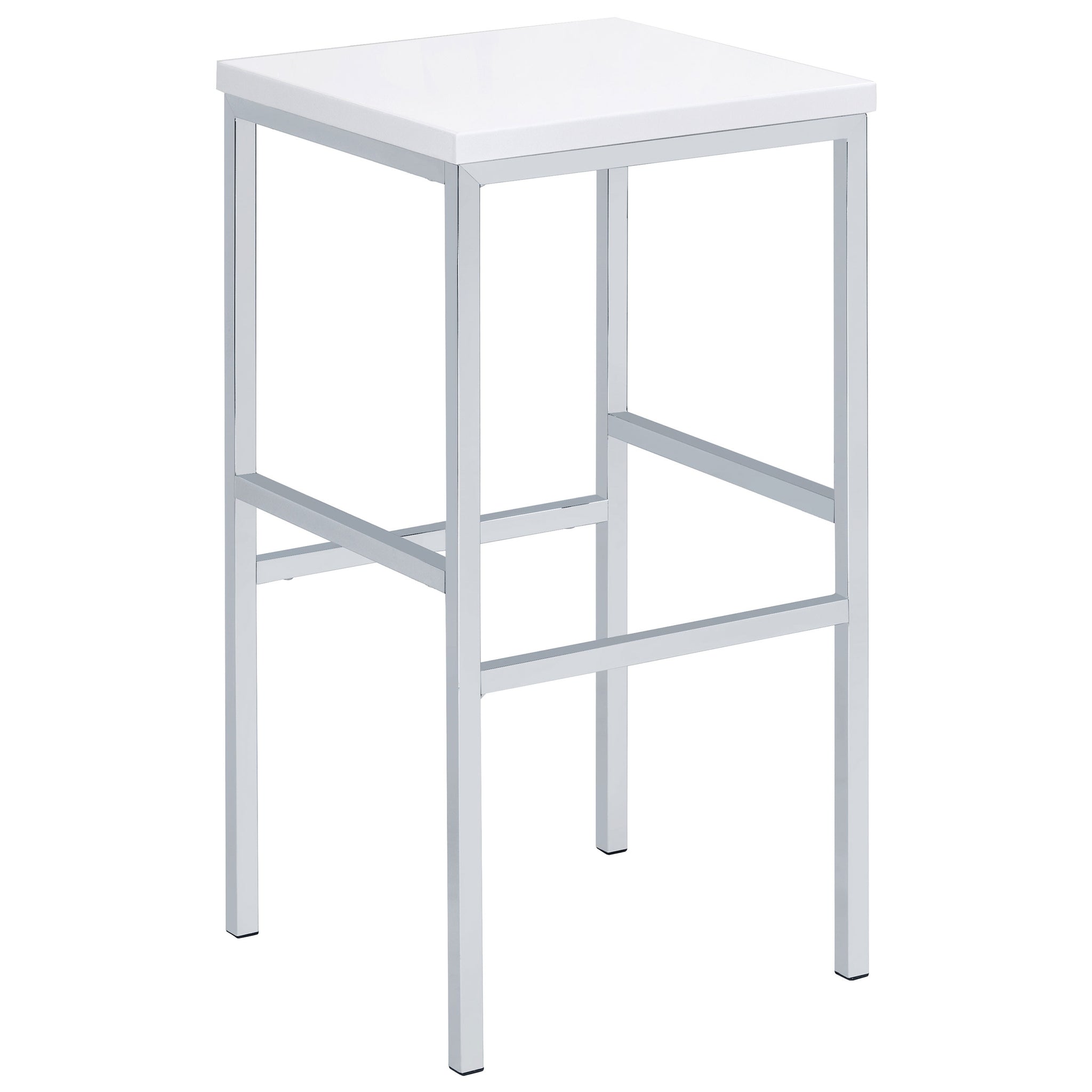 Ultra-modern with a clean lined silhouette, this five-piece bar set comes complete with a rectangular shaped bar table and four bar stools. Perfect for more contemporary home, the table comes with sleek and square legs made and a steel frame in an electroplated and polished chrome finish that lends a luxurious gleam to any room. The tabletop features a high gloss white lacquer finish and seats four people comfortable. Each stool also features a matching lustrous high gloss white seat and matching legs. One the stools are also footrests for extra support and stability. Key Features: • Contemporary five-piece pub height bar set • Set includes bar table and four (4) backless bar stools • Steel frame electroplated and polished in chrome • High gloss white lacquer finished tabletop and seats • Constructed with steel and MDF