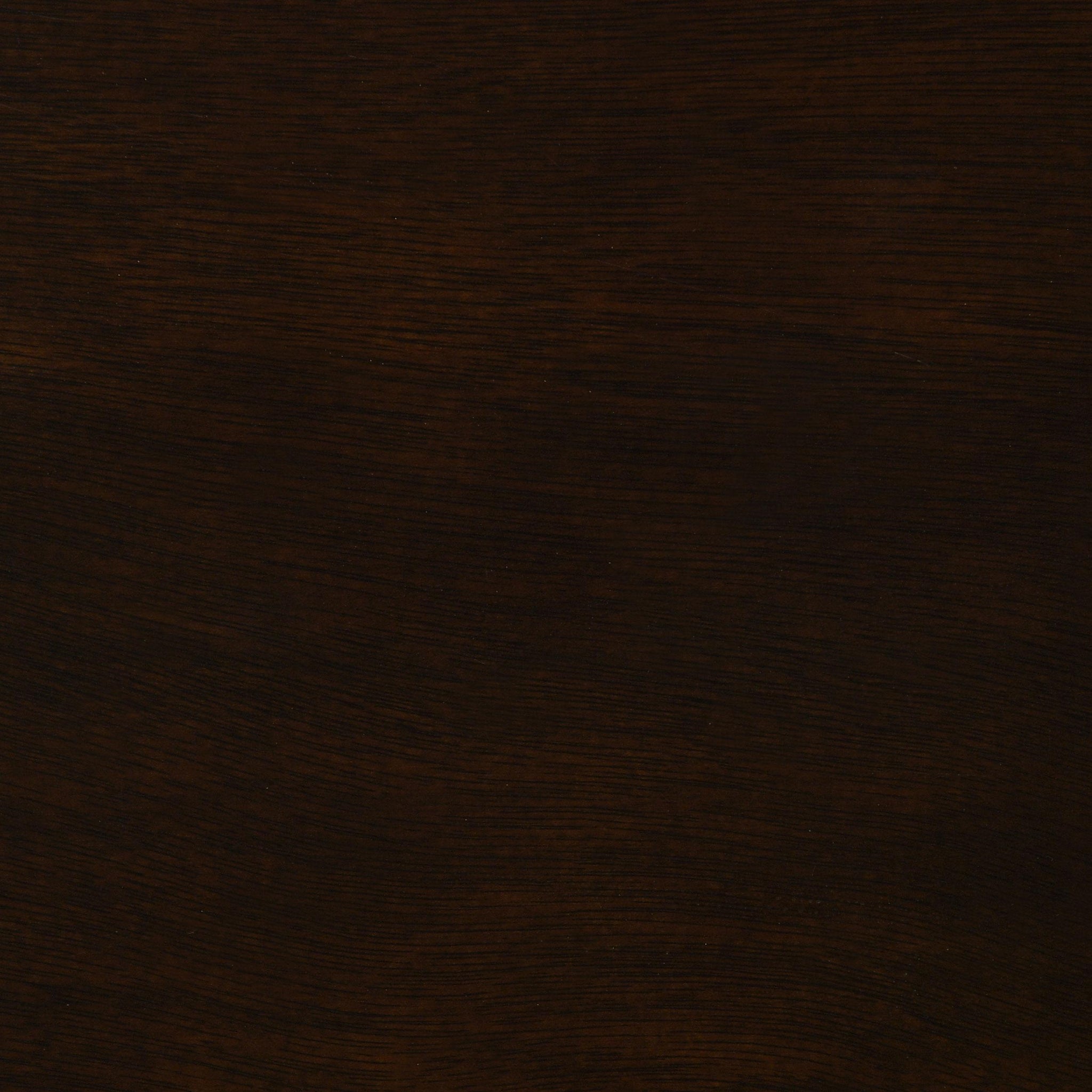 As sunlight filters through the window, it casts a warm glow on the lustrous dark cappuccino finish of this timeless dining set, inviting a sense of calm to mealtime gatherings. The oval table, adorned with a meticulously crafted wood veneer top, boasts an 18-inch extension leaf that promises to accommodate the ebb and flow of guests with grace. Surrounding the table, four side chairs with lattice backs whisper stories of traditional elegance, their cushioned seats upholstered in a tactile fabric that begs to be touched. This set, a harmonious blend of solid hardwood strength and delicate design, transforms everyday dining into a luxurious affair. Here, comfort meets quality, and style creates the backdrop for memories in the making. Key Features: • Oval dining table set with 18-inch extension leaf • Table and chairs finished in a rich dark cappuccino hue • Chairs feature lattice back design and cushioned seats • Soft fabric upholstery on chair seats for enhanced comfort • Constructed from solid hardwood with a wood veneer table top
