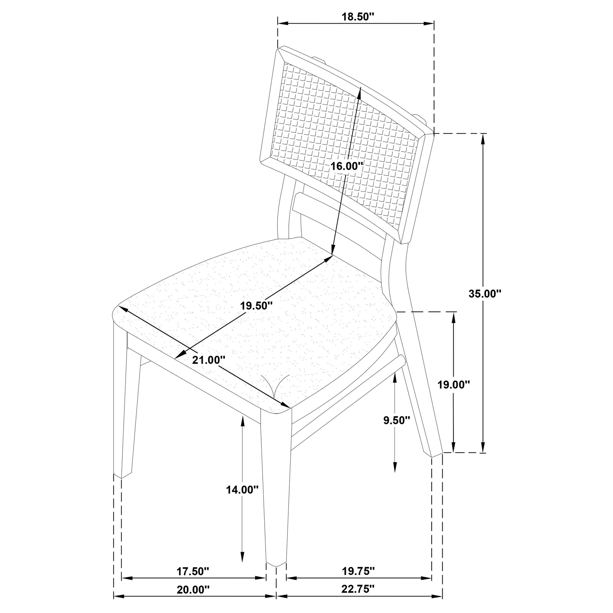 Create a warm and inviting dining space with this beautifully coordinated dining set, combining the natural elegance of a spacious dining table and handcrafted dining chairs. The table, crafted from solid wood, engineered wood, and oak veneer, features a smooth rectangular top with rounded edges and an 18-inch extension leaf. Paired with the hand-woven radio weave cane dining chairs, this set adds a touch of artisanal charm and natural beauty to any room. Each chair is designed with a sturdy wood frame, a foam seat cushion upholstered in soft beige fabric, and a light, airy backrest that balances comfort and style. Together, the table and chairs offer a seamless blend of durability and sophisticated design, making this set perfect for family meals, gatherings, or special occasions. Key Features: • Seven-piece dining set includes a spacious table and hand-woven cane back dining chairs • Table with 18-inch extension leaf crafted from solid wood, engineered wood, and oak veneer • Hand-woven radio weave cane backrests on chairs add artisanal detail • Chairs feature foam seat cushions upholstered in soft beige fabric for comfort • Perfect for creating a cohesive, stylish look in modern or traditional dining spaces
