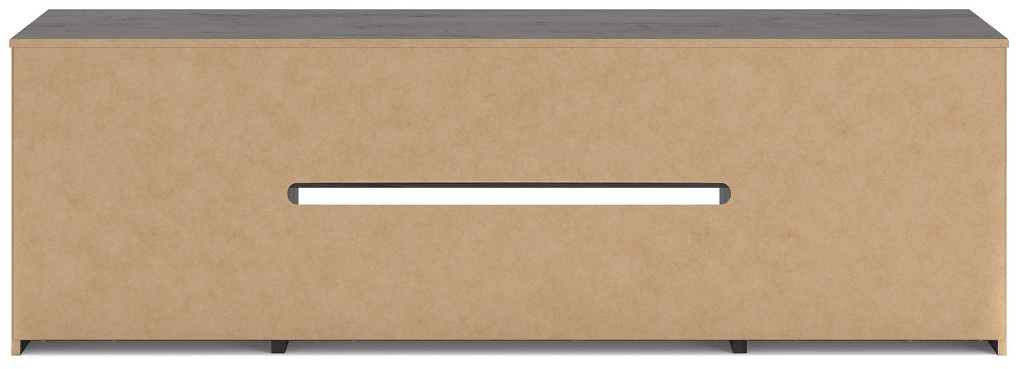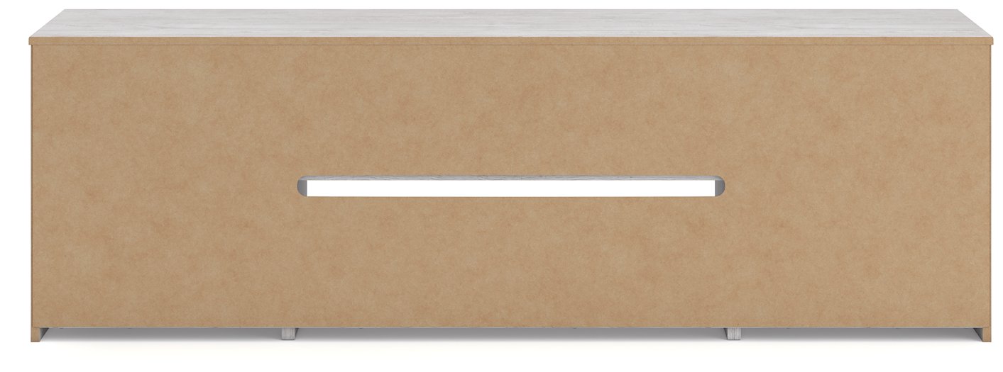 This TV stand with electric fireplace embraces a classically charming aesthetic and repurposes it for modern living. Its dark charcoal finish appeals to your love of vintage character, while a chic chevron pattern is effortlessly on trend. Media accessories stay tucked away in style thanks to hidden storage behind the doors. And for added ambiance, the electric fireplace brings a cozy-cool vibe to your living room. With the touch of a button, activate the LED-lit flame and adjust the temperature or the flame brightness. The flame effect includes multiple color options and a realistic-looking faux birch log set.