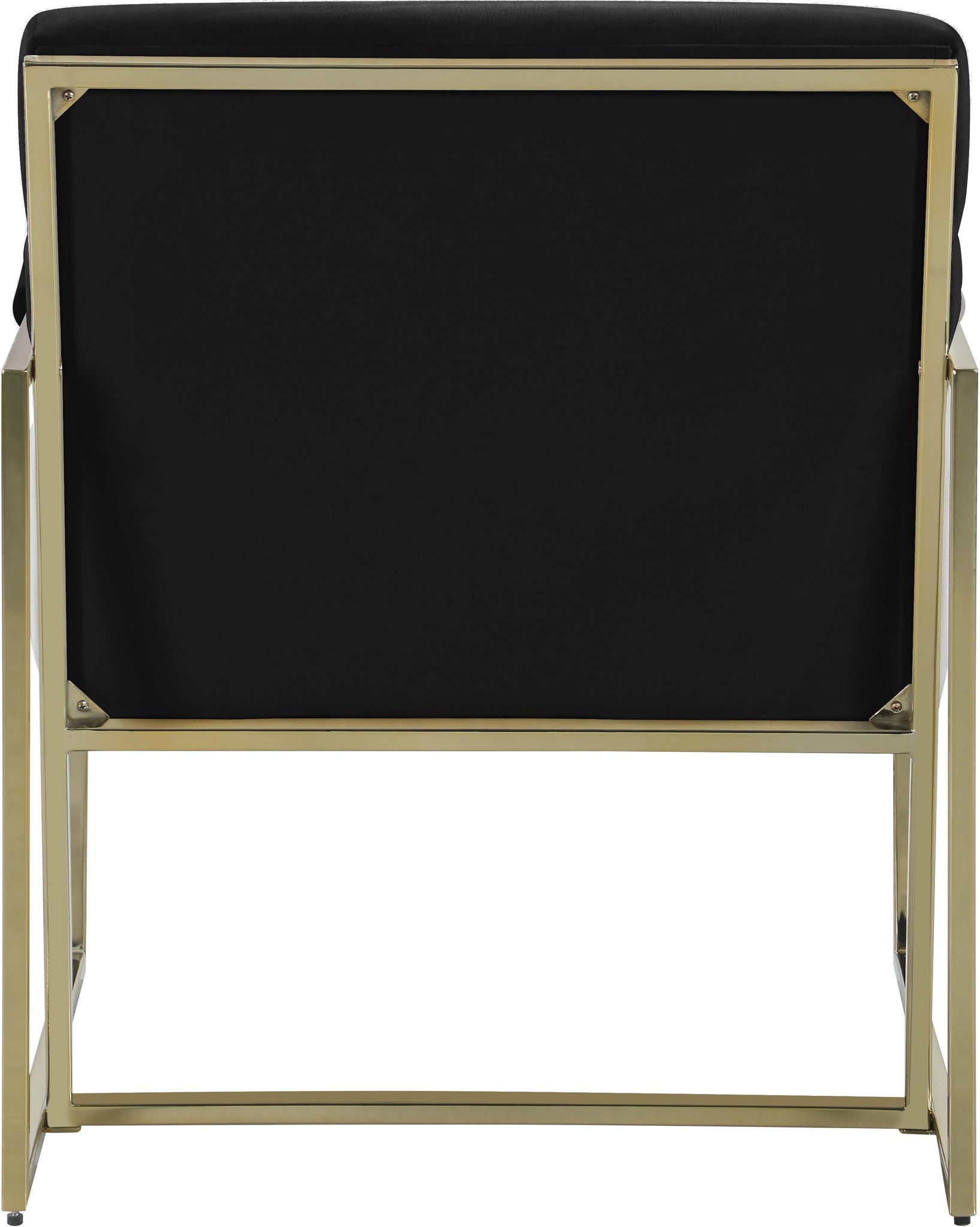 This Wayne velvet accent chair is a fitting addition to any contemporary interior space. Lovely soft black velvet feels sleek and chic to the touch, ensuring thatyou'rere seated in total comfort. Deep channel tufting along the back and seat of the chair and its padded arms add to its comfort potential. The chair���s gold iron frame adds to its contemporary design and lends it the sturdiness needed for years of beautiful use.