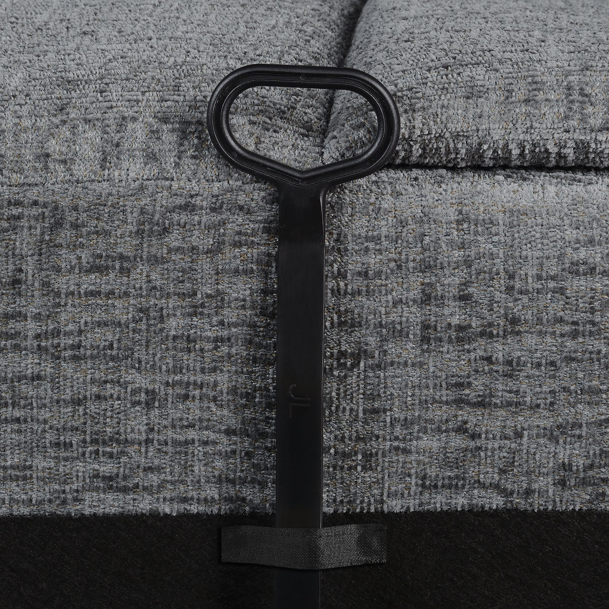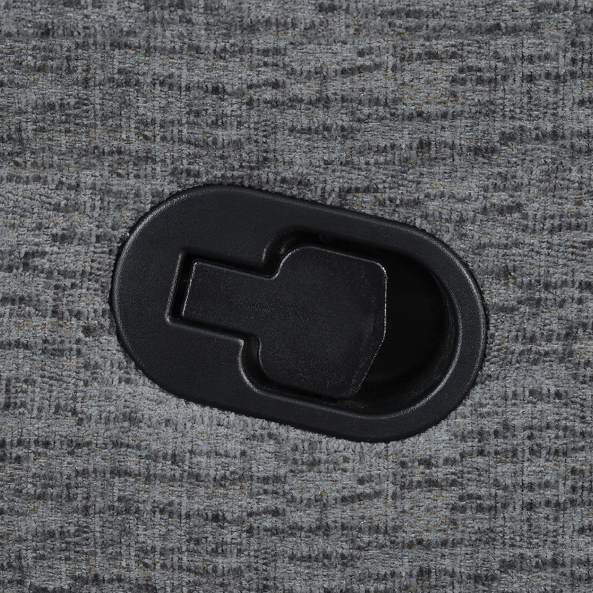A trio of recliners and pair of consoles create a theater-inspired seating experience for your home. A modified power reclining sofa is the ultimate in indulgence, creating plush comfort and relaxation for movie marathons and Sunday game days. Charcoal fabric upholstery is smooth and soft, complementing seating designed for exceptional comfort and support. Each seat is divided with a storage console, offering a spot for snacks and essentials and offering a pair of cupholders that keep refreshments within reach. On either end of the sofa, pillowtop arms add plush, inviting style for your living area or dedicated media room.