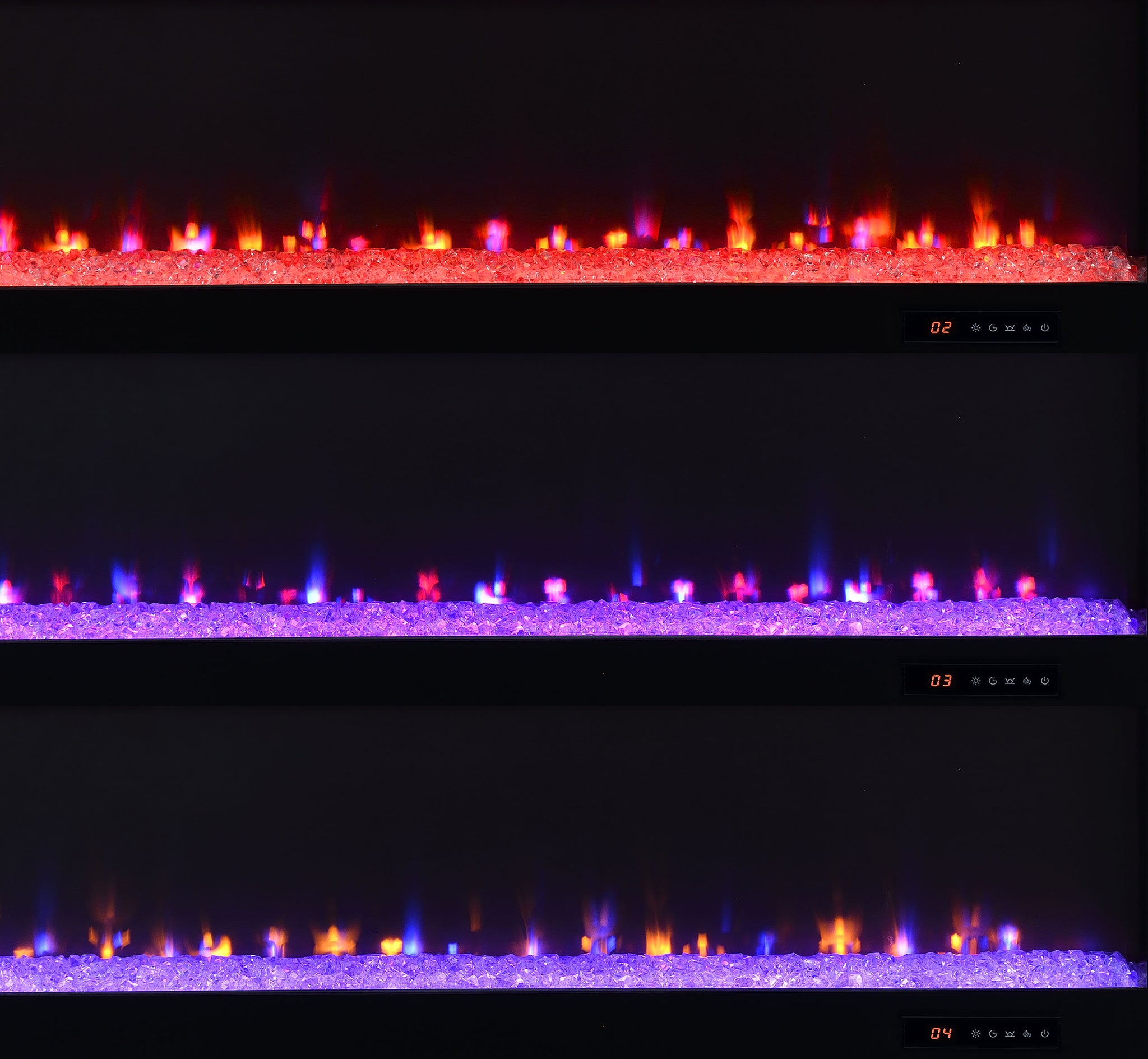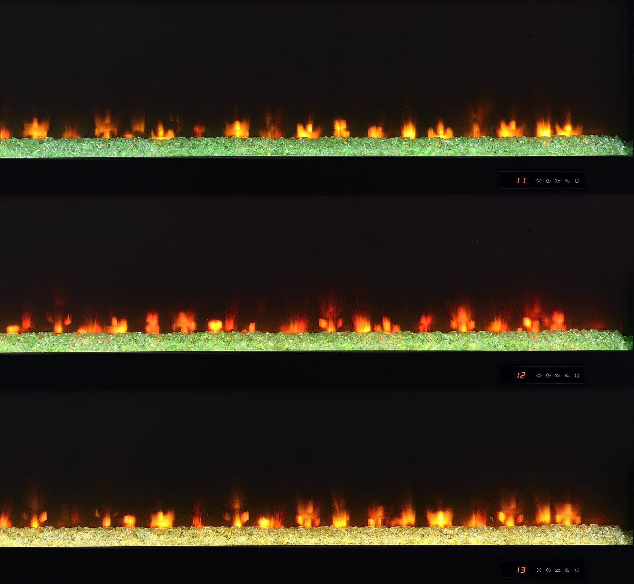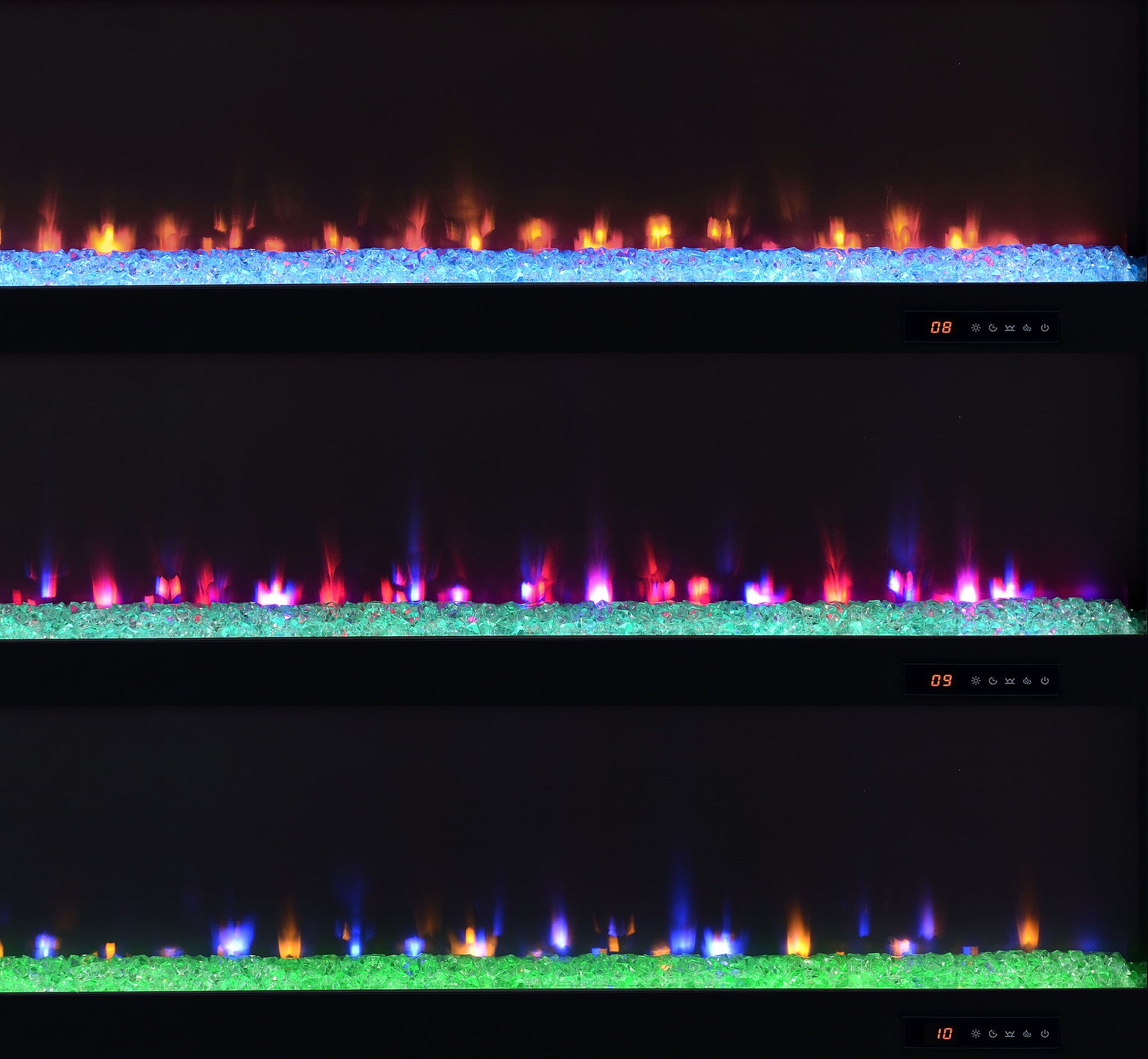 This expansive fireplace media console delivers the perfect fusion of storage and style for spacious living areas. A wide electric firebox rests atop a bed of glistening crushed acrylic crystals, offering fifteen flame color options controlled by a wireless remote. Dual open cubbies provide easy access to devices, while two cabinet doors conceal adjustable shelves for flexible storage. Crafted from engineered wood with a mango-tone laminate veneer, each compartment includes rear cutouts for wire management. Please note that this console does not include a heat function. Key Features: • TV stand flame visualizer console with crushed acrylic crystals and fifteen flame color options • Mango finish showcases natural wood grain with a rustic and warm visual texture • Two cabinet doors conceal adjustable shelves for hidden and customizable storage • Dual open cubbies offer easy access to gaming systems, players, or media devices • Crafted from engineered wood with eco-friendly, scratch-resistant laminate veneer • Accommodates TVs up to eighty-five inches with wireless remote and rear cord cutouts